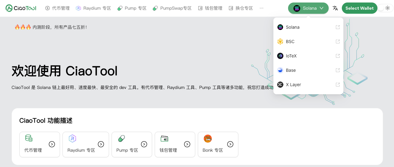 * **Solana ➜ 用 SOL**，费用：<https://ciaotool.gitbook.io/ciaotool/sol/price>