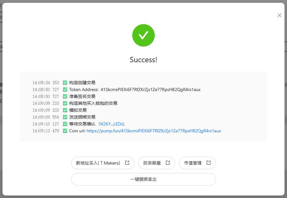 &#x20;**捆绑买入**有个缺点，它有可能会被 pump 平台识别为 Bot。