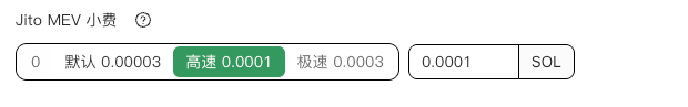 * 配置 Jito MEV 小费，用于加速打包交易，提高排序优先级。