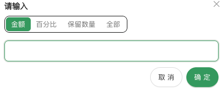 * 设置转账数量（统一输入转账金额；按金额、百分比、保留数量、全部设置）