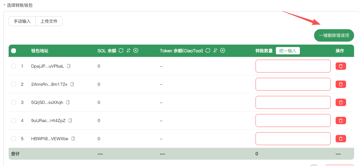 * [x] 答： 可以。你可以选择系统自动生成钱包，也可以上传自定义地址列表；每笔转账金额可选固定值或输入自定义数量。