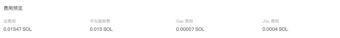 * 费用概览：**例：**&#x8F6C;账钱包数\*换仓钱包数\*0.0001875 SOL+ Gas费+Jito费