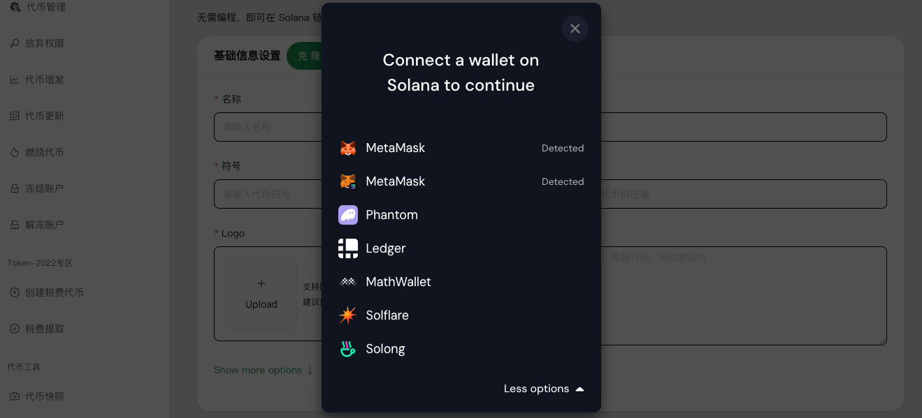 * [x] 答：建议使用支持 Solana 的浏览器插件钱包，如 Phantom 或 MetaMask，确保已正确连接。